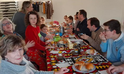 Entourés des membres du Café de l’Imprévu et de leurs parents, ils ont pu se régaler de viennoiseries et de boissons. A l’église ils ont ensuite eu une présentation du déroulement de la messe avec la répartition des rôles.