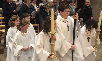 Cinq d’entre eux ont vécu leur première Eucharistie dans le choeur, un bon moyen de vivre activement ce temps d’Eglise.