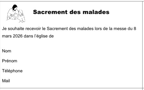 Le Samedi 7 Mars à Saint Grégoire pendant la messe de 18h30, le Dimanche 8 Mars aux messes de 11h à Betton et Melesse, vous sera proposé ce beau sacrement du Don du Saint-Esprit qui renouvelle la confiance en Dieu. Pour cela il est nécessaire de s’inscrire en utilisant ce petit flyer.