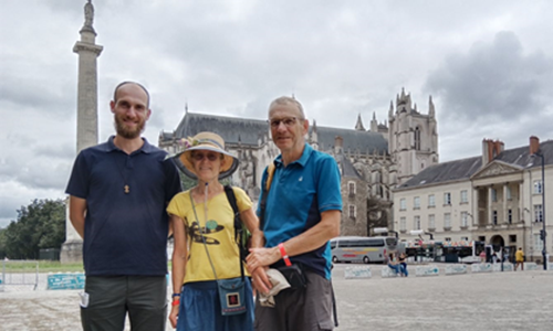 Anne-Marie et Jean-Marie Lemière de Melesse y ont rencontré Benoit Pommier, séminariste en lien avec la paroisse ; il salue les paroissiens de St Jean-Paul II !