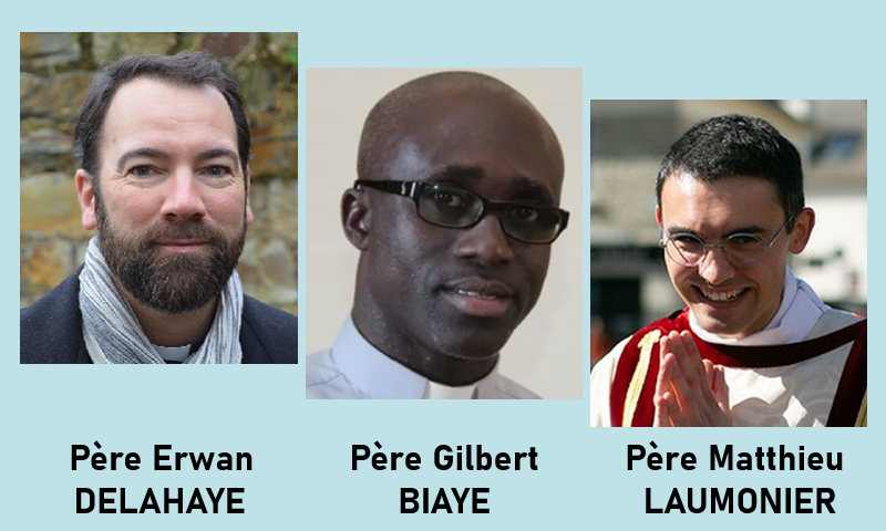 A partir du 1er septembre 2025, c’est avec les pères Gilbert Biaye et Matthieu Laumonier, nommés vicaires à la paroisse Saint Jean-Paul II, que Père Erwan assurera son ministère, en qualité de curé de la paroisse.
