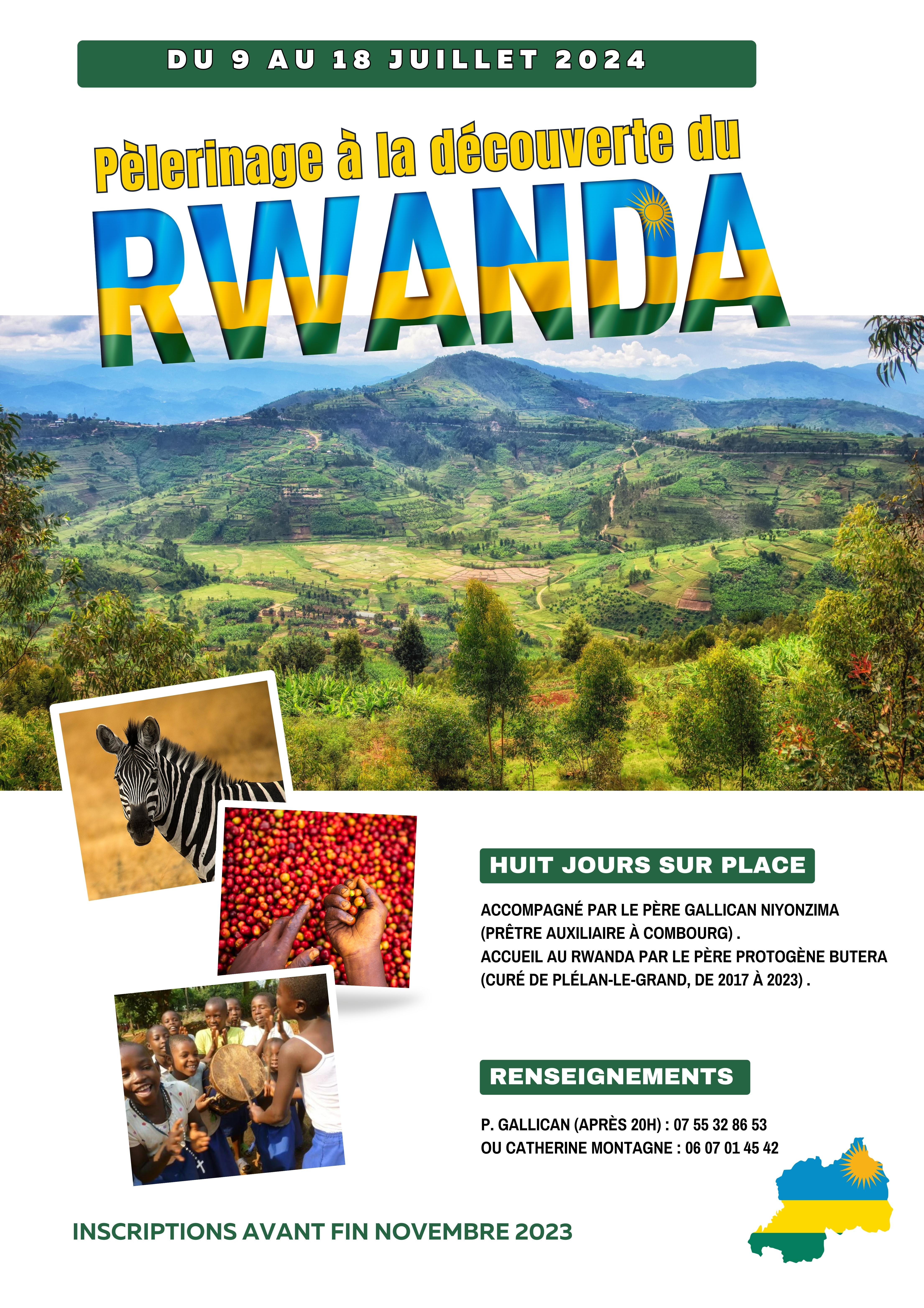 Un voyage au Rwanda est organisé la semaine du 9 au 18 juillet 2024. Le Père Protogène accueillera les pèlerins qui souhaitent découvrir le Pays aux mille collines ; il sera accompagné par le Père Gallican.