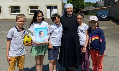 Le samedi 20 mai, quelques enfants se préparant à leur première communion ont été accueillis chez les petites soeurs des pauvres à Saint Pern ! Ils étaient accompagnés du Père Guillaume et de quelques mamans catéchistes :