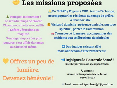 • Visite dans les Ehpad et les foyers pour des temps d’échanges et de Prières partagées dont l’Eucharistie,